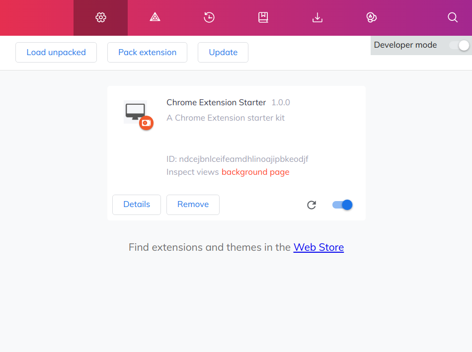 Loading the extension in Google Chrome