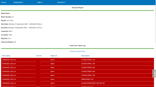 I created this script due to there being no way to tie processed batch reports to their corresponding audit log, this program will highlight any issues that have happened while inspection has taken place. e.g common faults such as safety clutche slips or having to remove a vial manually when it faults to the wrong reject channel