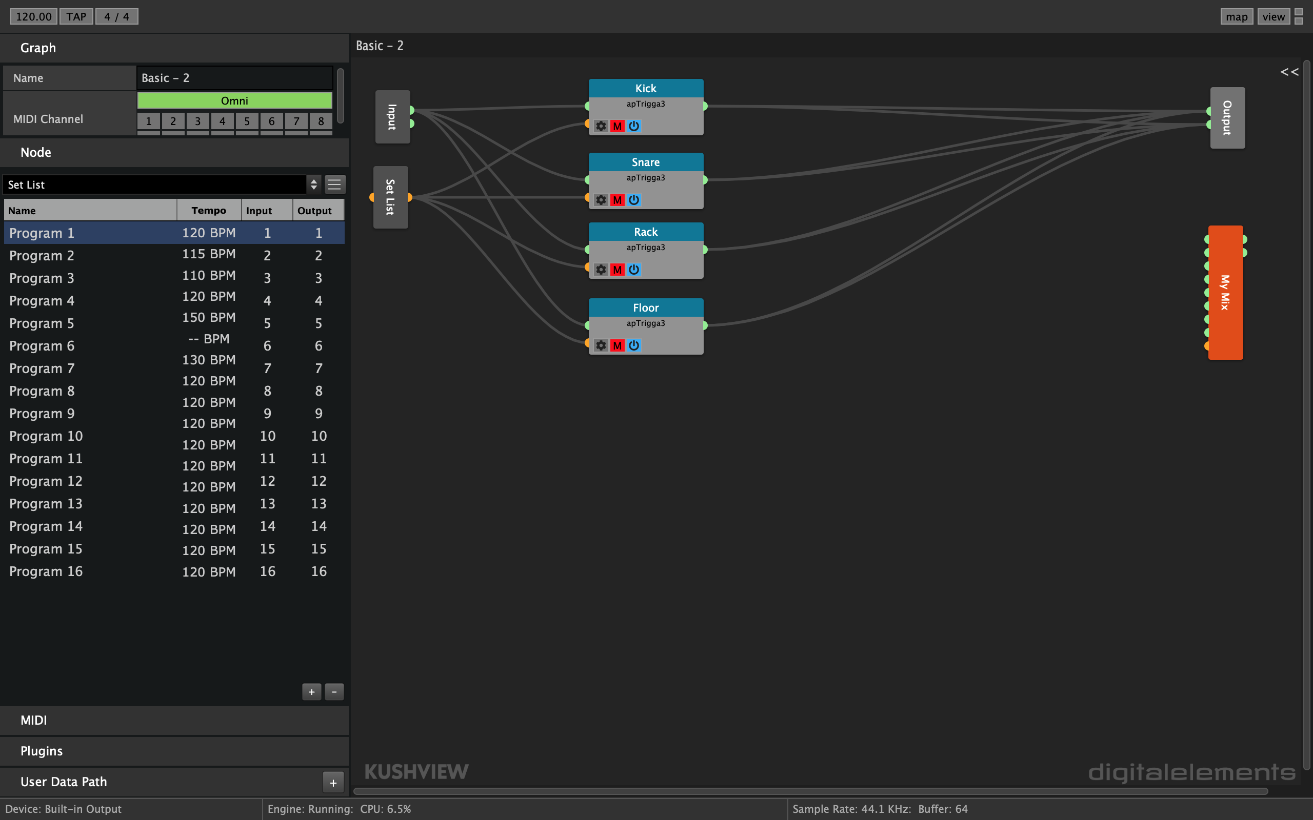 Add a new column to a MIDI Map node that sends tempo to the transport for tempo settings for individual MIDI MAP programs. ( not sure if time signature is required )