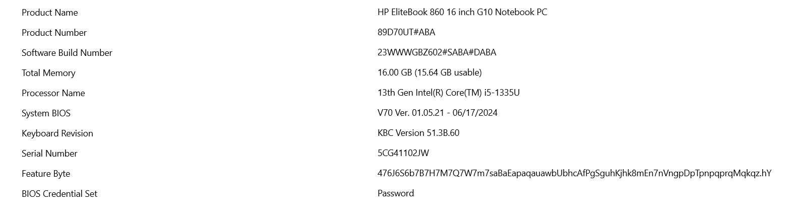 Here is a look at a comparison between mine and a coworkers HP System Information