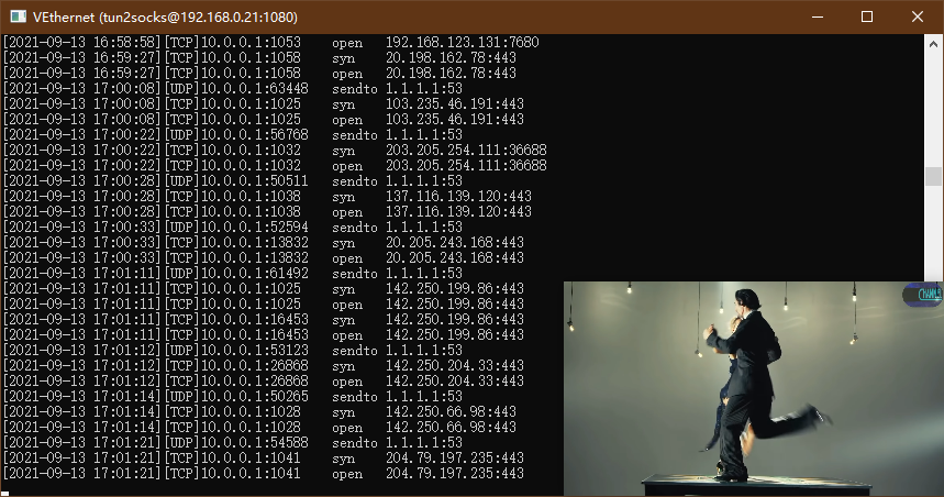 - ./tun2socks.exe --proxyserver=192.168.0.21 --proxyport=1080
