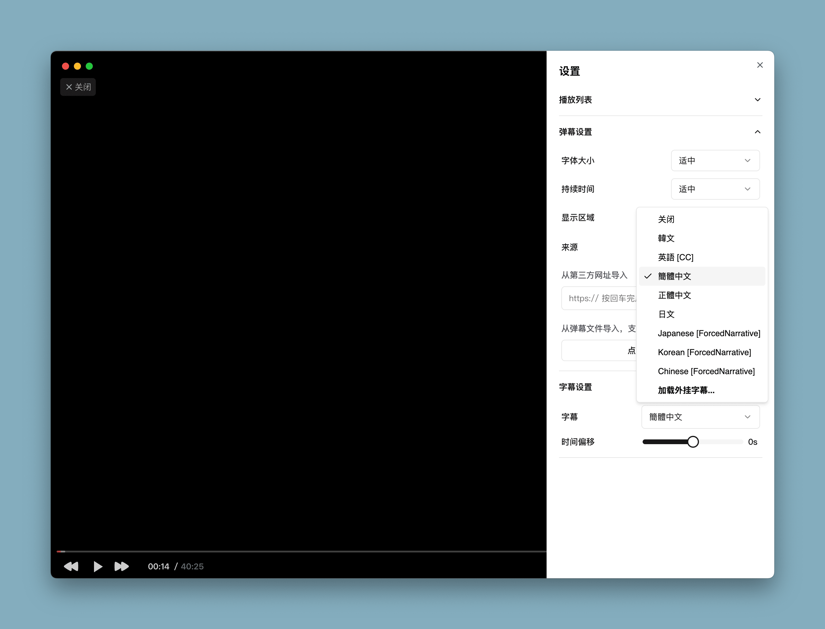 - 支持导入本地 XML 和 JSON 弹幕文件
