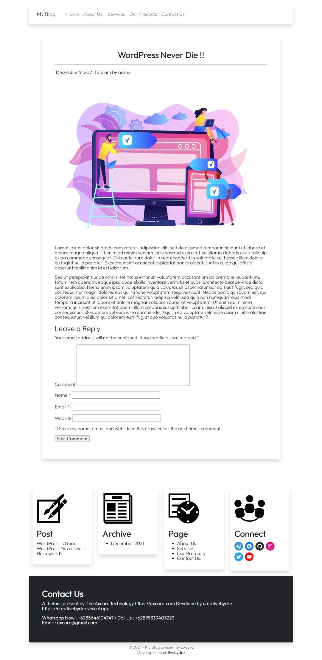 test drive demo : https://axcora.my.id/wordpress/
