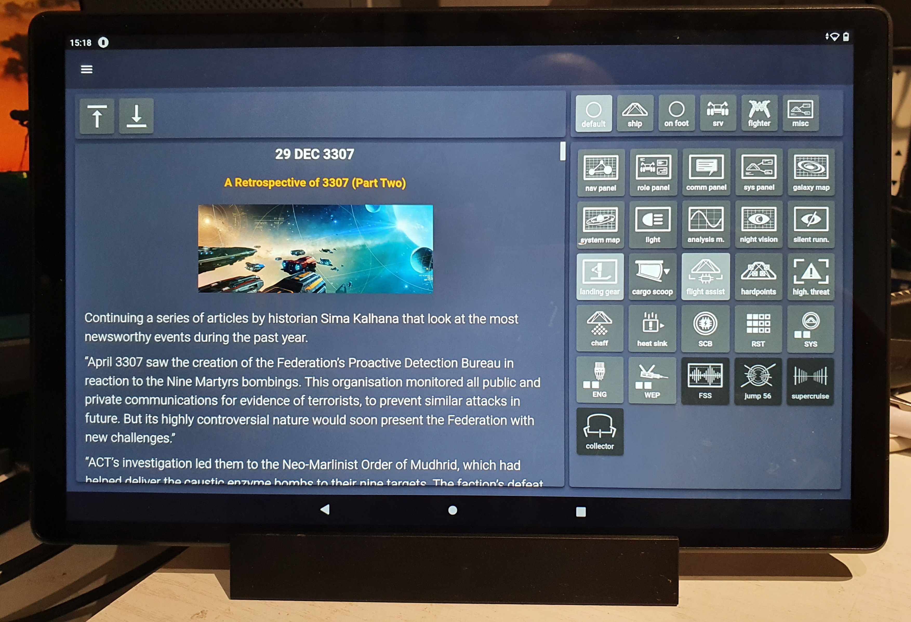 Use a wide 'bar style' touch screen as a game dashboard (like fip-panels) and button box (like streamdeck) for Elite Dangerous :
