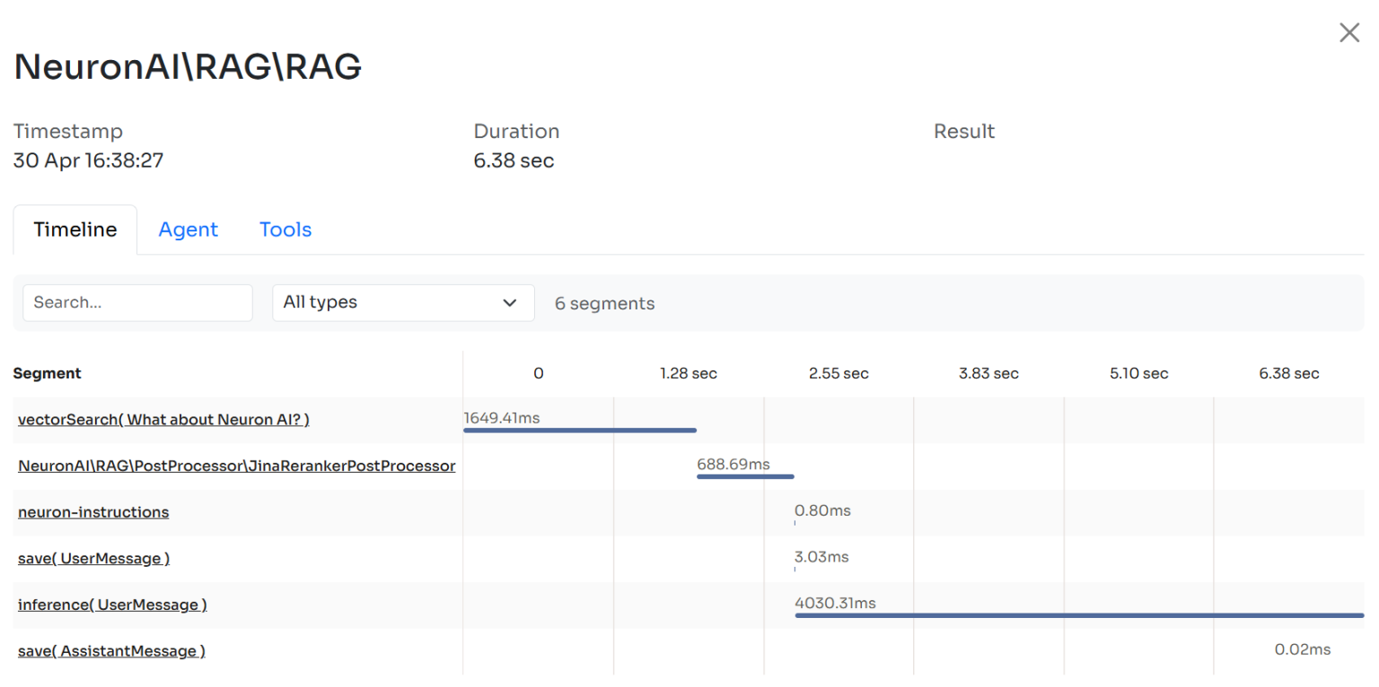 It provides full visibility into the AI Agent execution flow. Learn more on the Neuron documentation: https://docs.neuron-ai.dev/advanced/observability