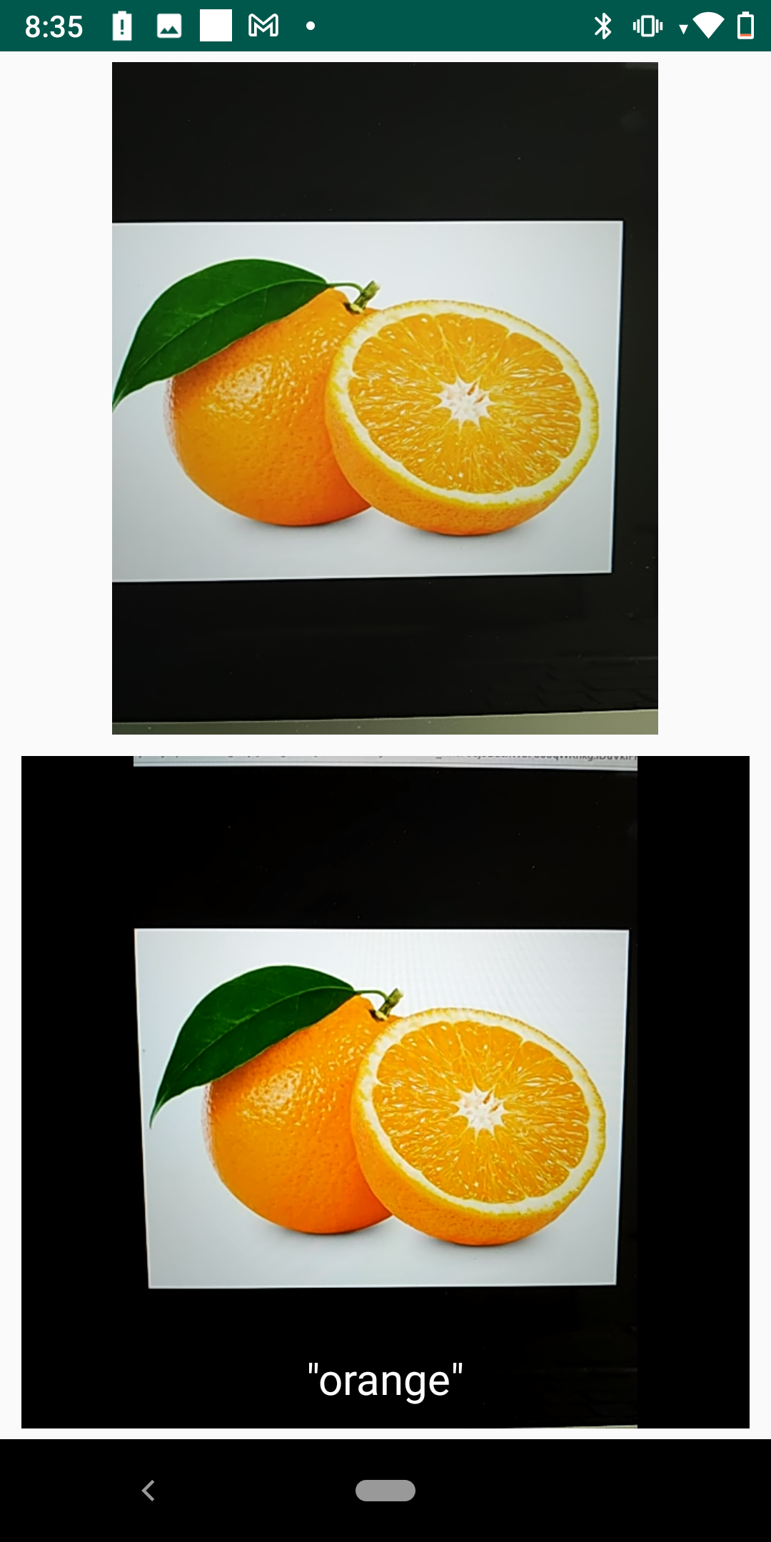 +- The bottom view shows the camera input and its classification result on the screen together.