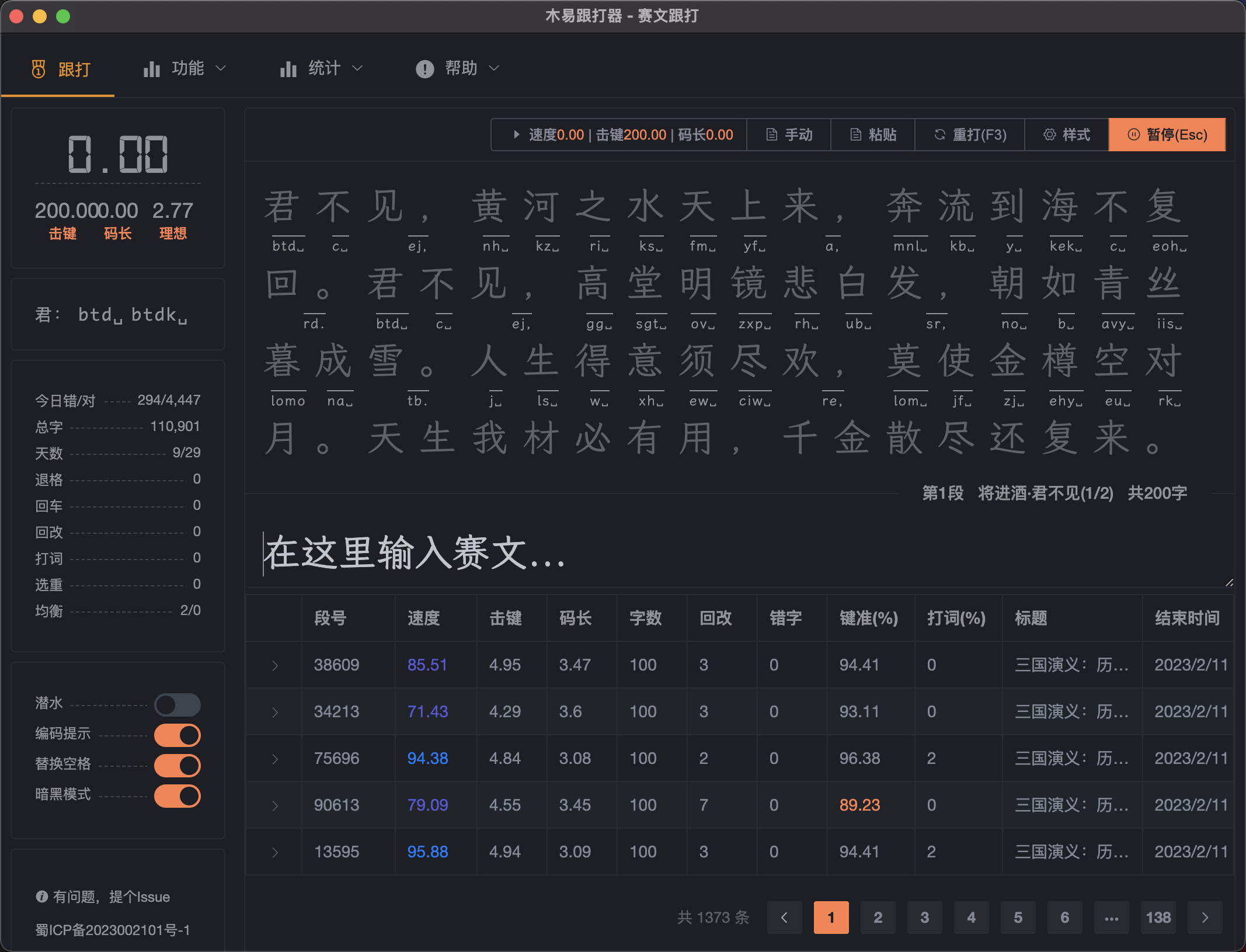 从 Windows 转到 Mac 之后,苦于macOS没有可用的跟打器,偶然看到了QT基于他们的代码做一个macOS上可直接载文用的跟打器,外理了一些macOS系统的兼容,于是便有了这个项目。