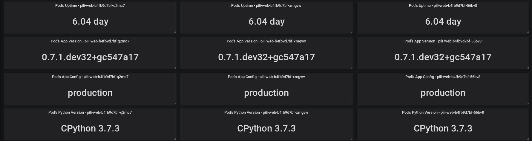 Dashboard aimed at the apps deployed with Kubernetes, although it can be easily tweaked to be infrastructure-agnostic.