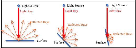 The diffuse lighting model considers both the direction of light and the orientation of the surface to determine the quantity of light that is dispersed and reflected from the surface in various directions.