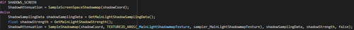 If SHADOWS_SCREEN is defined, the function calculates the shadow attenuation based on the screen space shadow map. Otherwise, it calculates the shadow attenuation based on the shadow map.