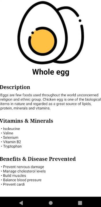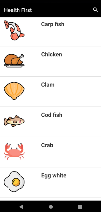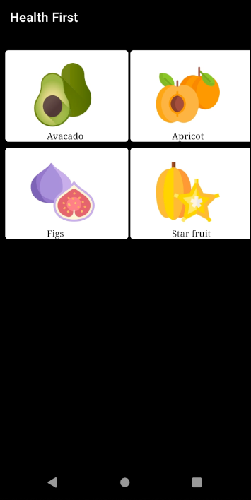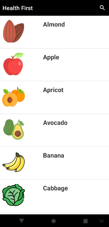 Health First "One Stop Shop" for all facts regarding nutrients, vitamins, and minerals present in the fruits, vegetables, and meat at your fingertips. Installation Install Java Development Kit Install Android Studio Screenshots📷