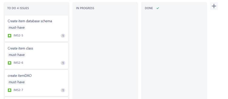 In addition to the above requirements, the project required the implementation of several stages of a typical CI pipeline. These were project tracking, version control, development environment and build server. For project tracking agile was used to create a Kanban board. Story points and labels were assigned to each item. Here is a look at a the kanban board created when a sprint for item section was created.