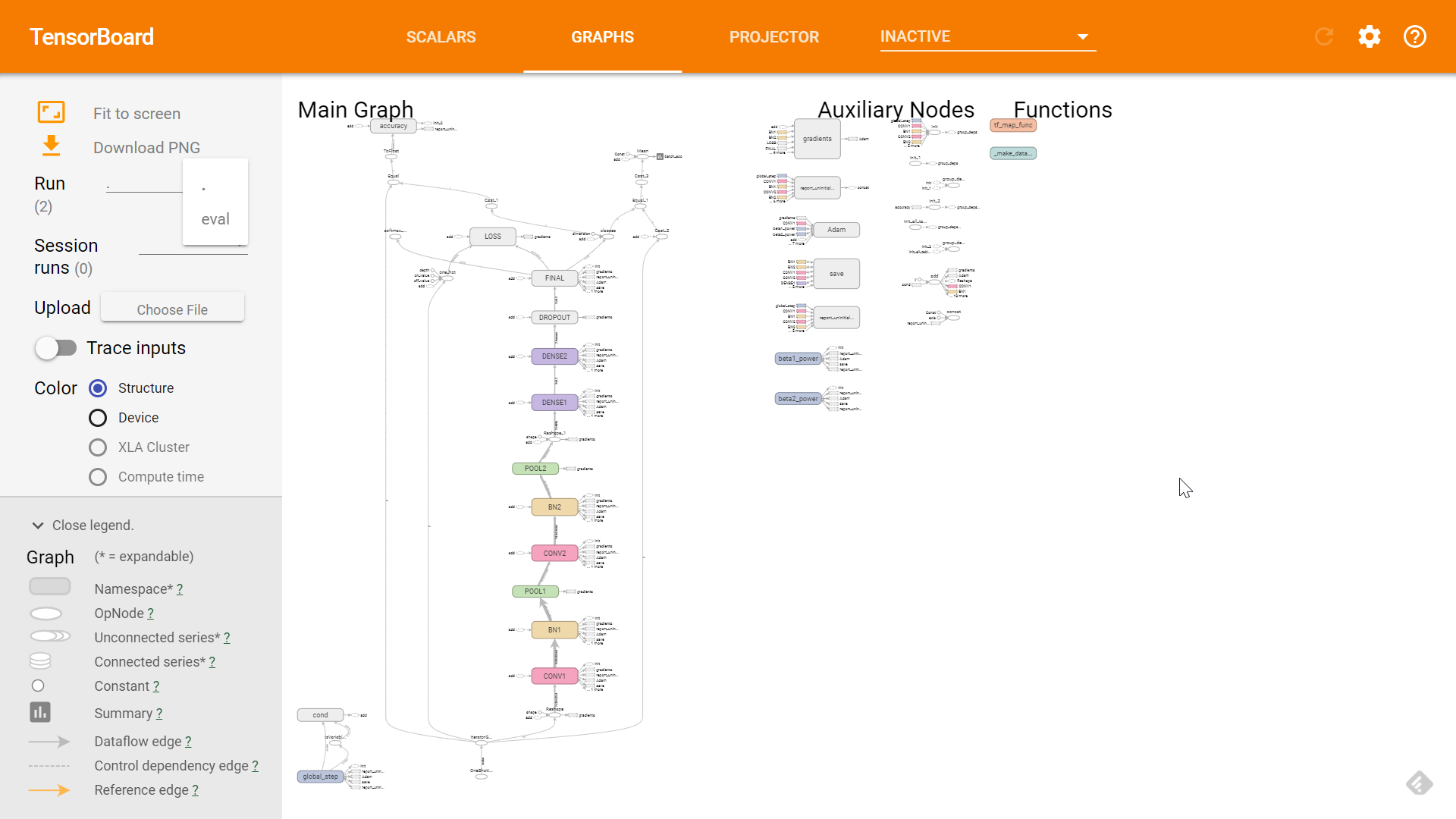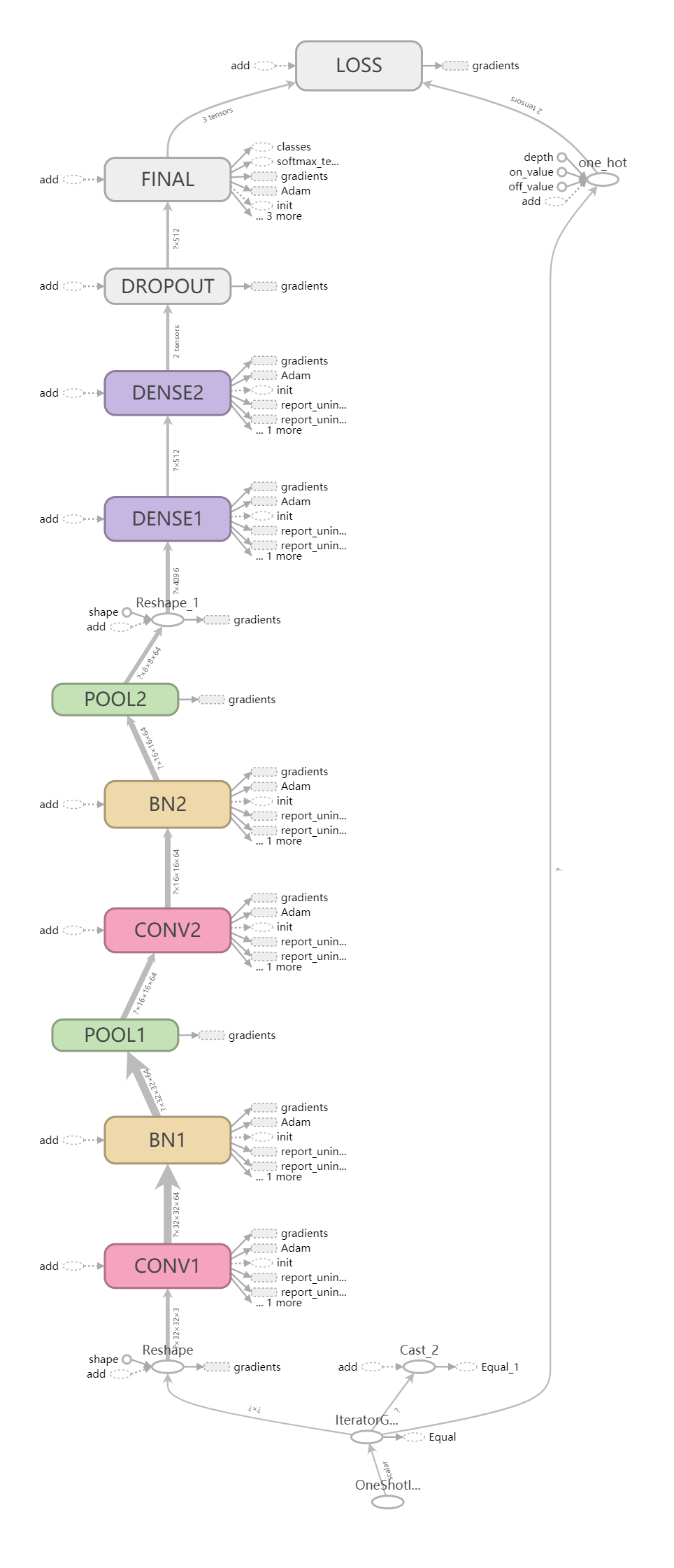 为了让大家对模型架构先有个清晰地了解,我先把 TensorBoard (不熟悉 TensorBoard 的话可以参考这里)中显示的模型架构图贴出来(数据集我也就不介绍了,这是个很常用的数据集,如有不熟悉的可以参看这里):