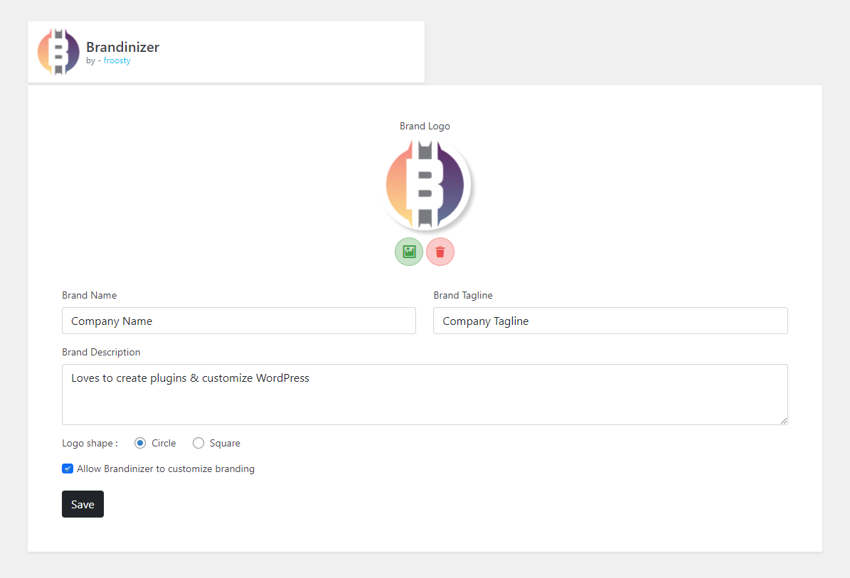 Brandinizer - Custom Dashboard Branding Plugin for adding Customized Brand Info in WordPress dashboard.