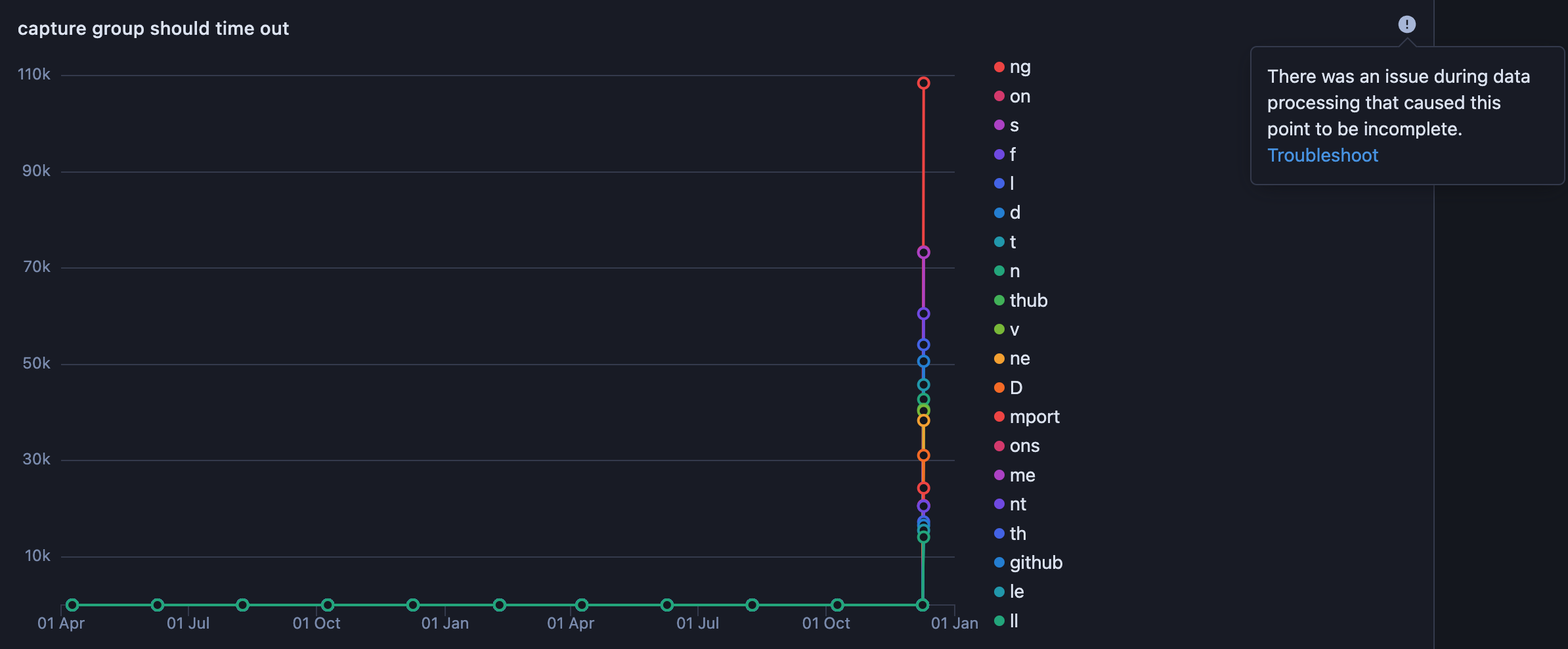 1. we don't provide datetime information for timed out capture group points