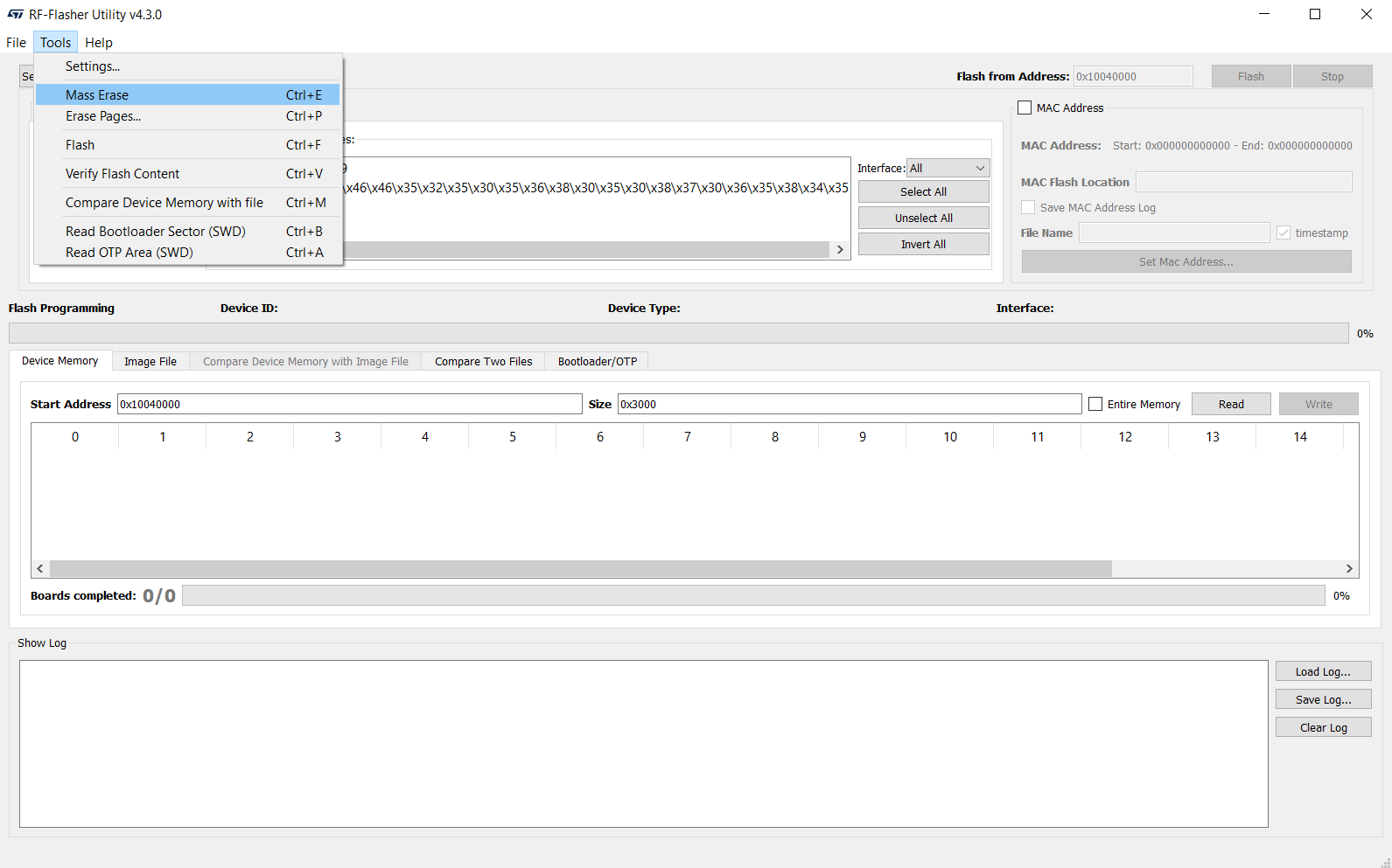 First of all, install the ST BlueNRG-1_2 Flasher Utility and open it, then select the SWD tab: