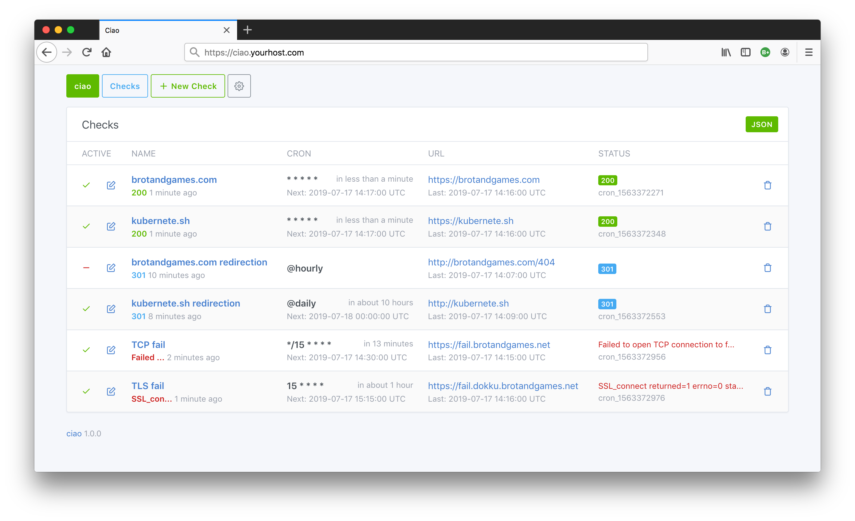 -d '{ "name": "brotandgames.com", "active": false, "url": "https://brotandgames.com", "cron": "* * * *"}'DELETE /checks/<:id>.json