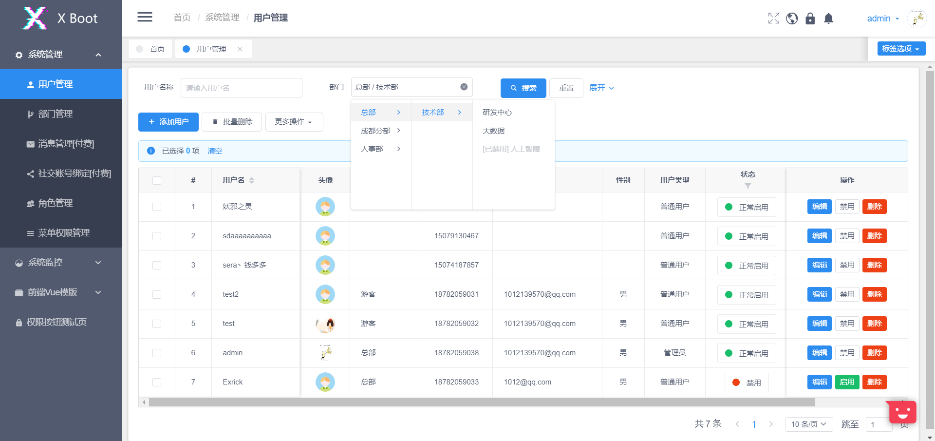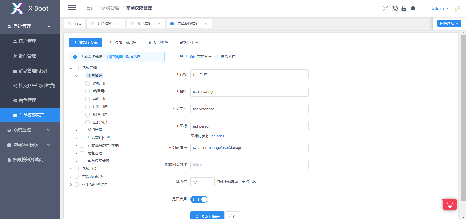 说明启动成功 管理员账密admin|123456 - 前台页面请启动基于Vue的 xboot-front 项目,并修改其接口代理配置
