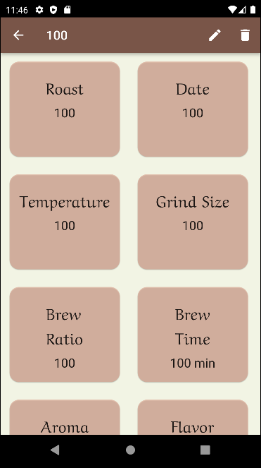 - Delete Icon: Alternatively, tap a coffee card, enter the detailed view, and press the trash can icon at the top-right corner to delete the note.