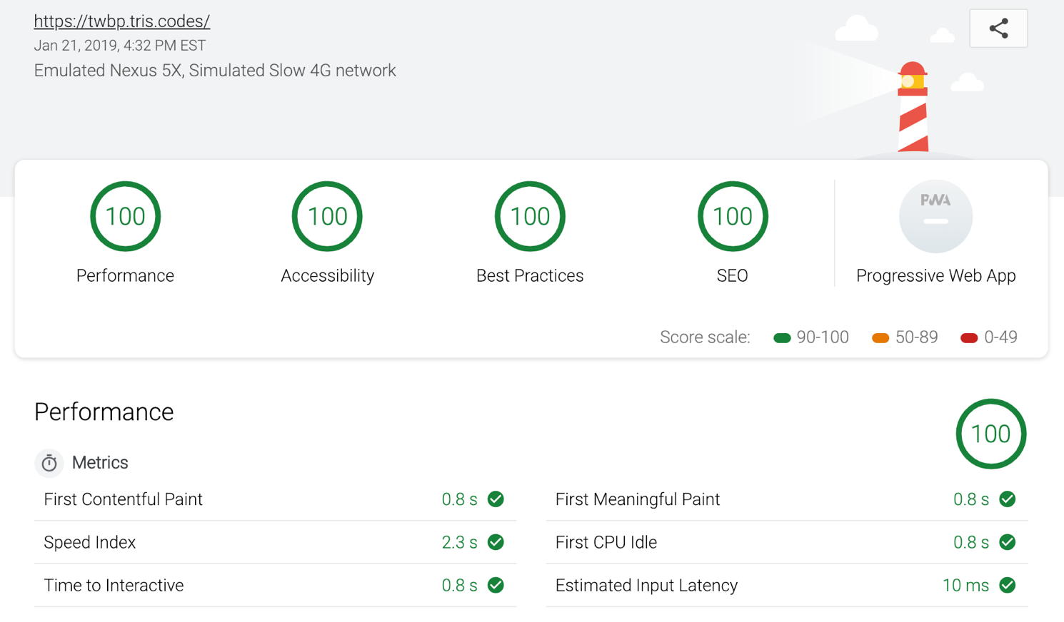 This webpack boilerplate is for beginner, intermediate, and advanced developers looking to create static websites quickly while acheiving all the right optimizations to score perfect on Google Page Speed Insights and Google Lighthouse Reports โ This is an evolution of tris-gulp-boilerplate, now with Webpack 4. Webpack is the new standard for bundling JS which Gulp wasn't capable of. Thankfully Webpack can both run tasks and bundle js ๐ช