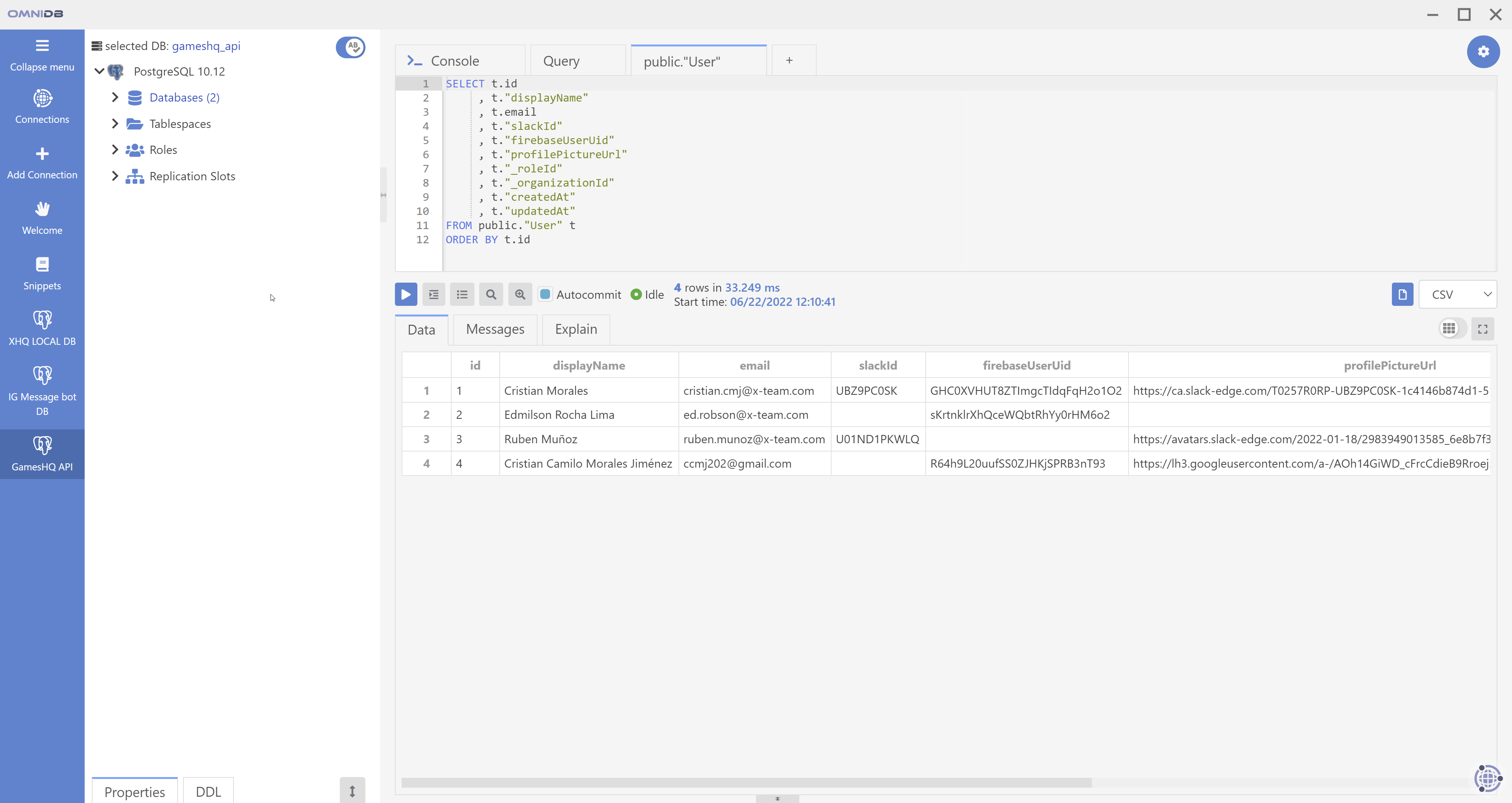 docker-compose up -dYou can now access the DB with your favorite client. If you don't use any, we recommend you OmniDB