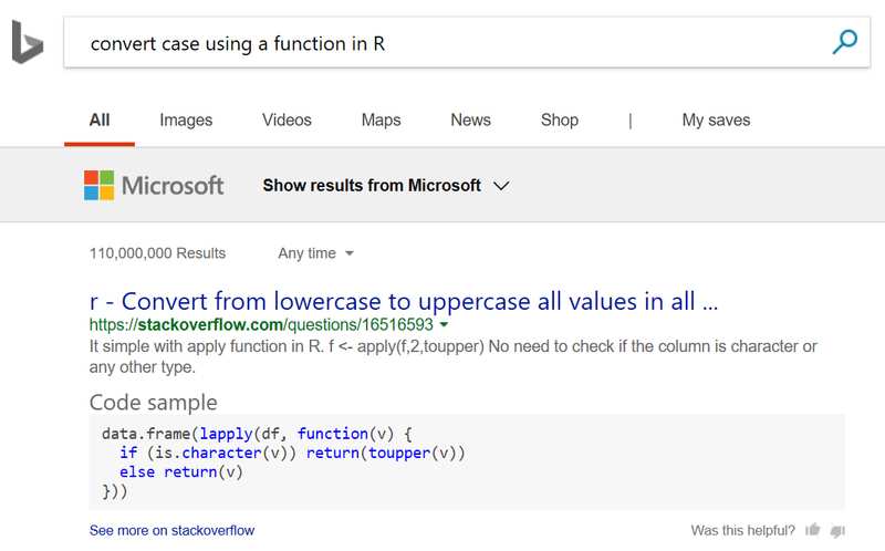 微软的 Bing 搜索引擎新增了代码搜索功能,你问一个编程问题,现在可以直接给出示例代码。