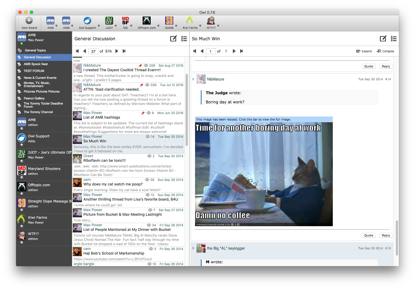 Owl is a "message board client". It offers a simplified user interface to browse message boards.