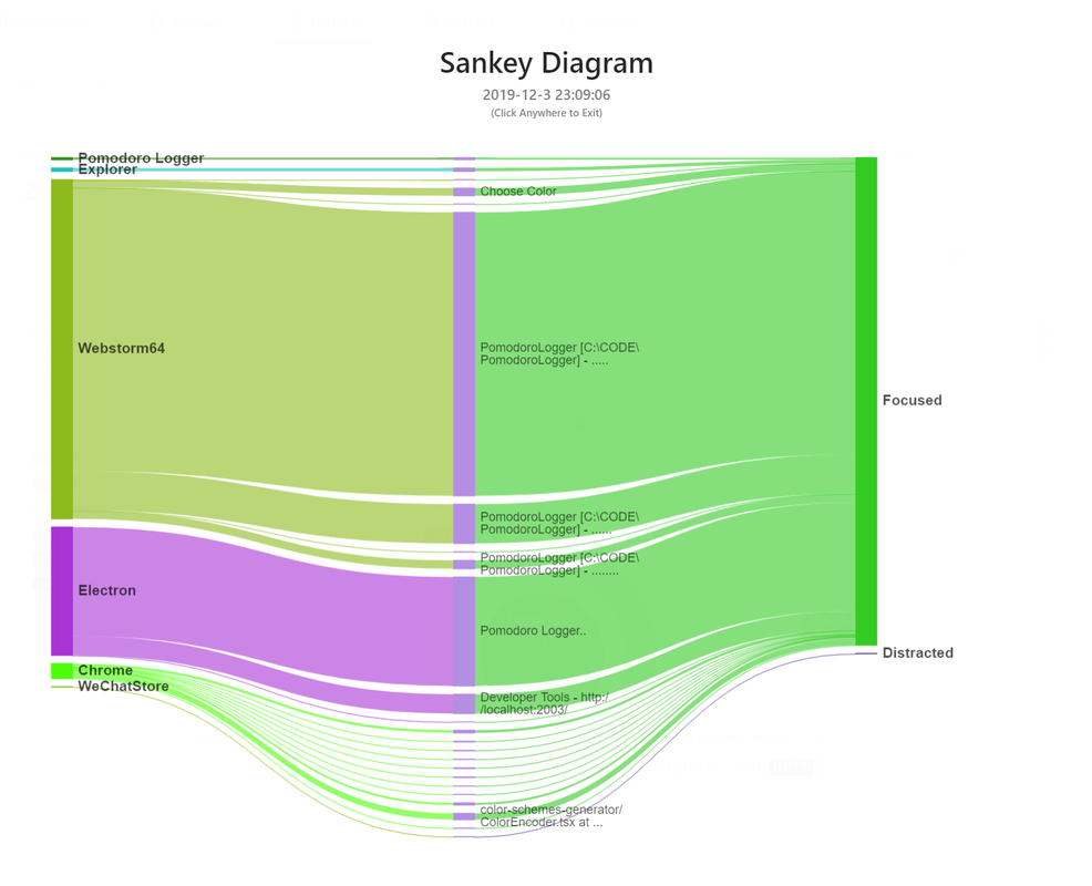 By connecting your todo items with the corresponding recorded Pomodoro sessions, you can analyze how often you are interrupted by email and social software, the time distribution of the application and application title used to complete the task. It will help you have a more comprehensive understanding of your working hours on PC.
